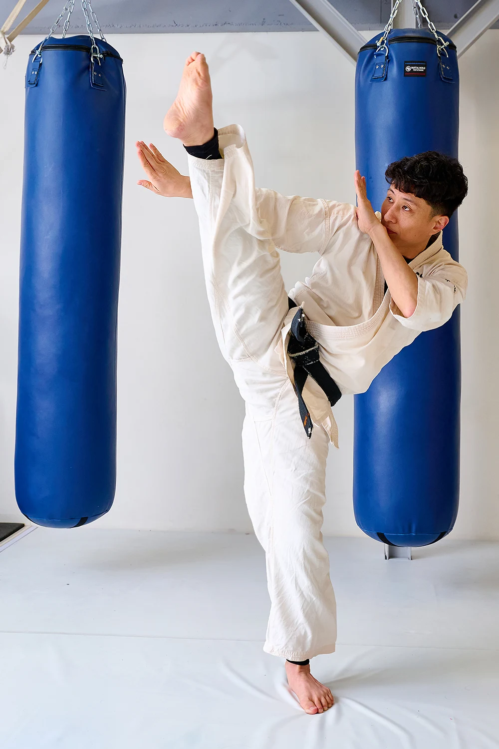 ドラゴンボールの孫悟空に憧れ、4歳から糸東流伝統派空手を学ぶ。16歳で誠空会に入門し、格闘空手をベースにボクシング、キックボクシング、柔術、レスリングと幅広い格闘技に挑戦。独自のスタイルを確立し、格闘空手やキックボクシングの大会で優勝を重ね、K-1トライアウトリーグにも参戦。空手指導の傍ら、海外を飛び回るサラリーマンとして5年間の貴重な経験を積む。その後、バーテンダー、DJ、デザイナーなど多彩な経験を経て、現在はレゲエアーティストNANJAMANのバックDJ(SELECTOR)としても活動中。代表交代や本部閉鎖の危機を乗り越え、1年で道場を立て直し、コロナ禍を経て移転リニューアルオープン。現在も精力的に活動を続ける。
