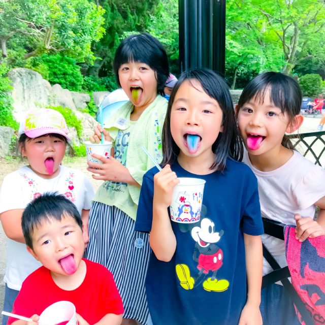 女の子チームは売店でかき氷をGET! ベロがカラフルに!