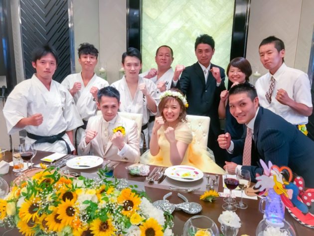 披露宴では懐かしの誠空会メンバーで演武を披露。