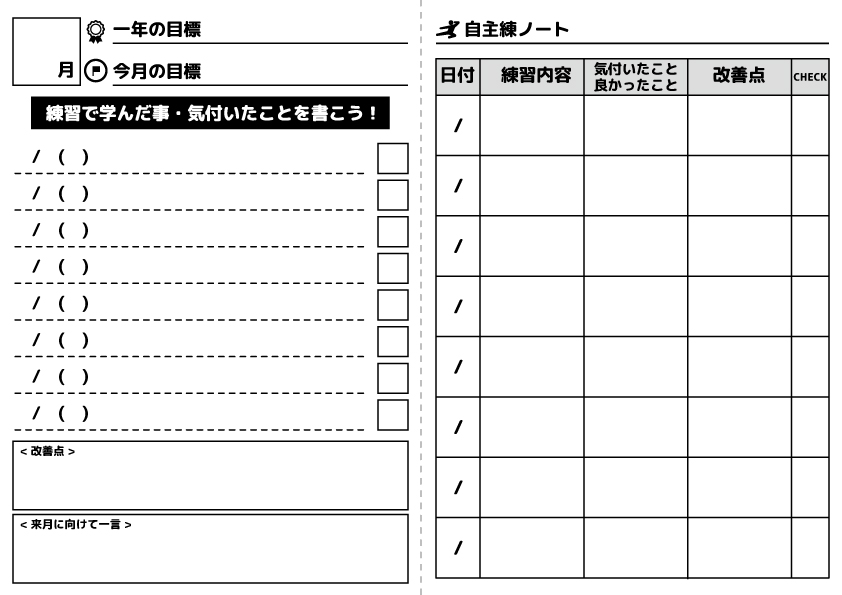 このノートは、空手の練習だけでなく、他の習い事や学校の勉強にも応用可能です。ぜひダウンロードして活用してみてください。