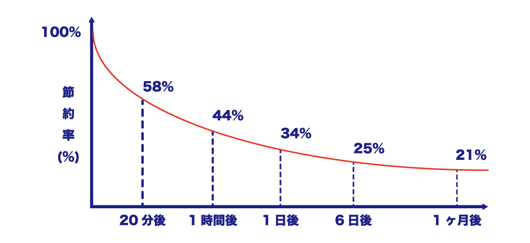 – 1時間後には44%しか覚えてない